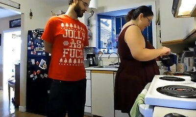 making coffee for husband, mature huge-titted bbw housewife