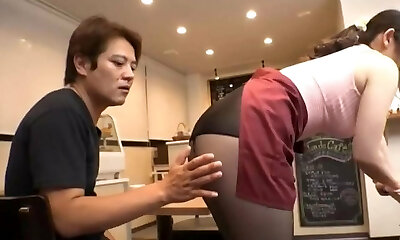 wspaniały japoński laska uprawia seks w pończochach