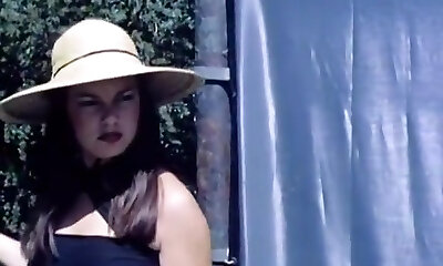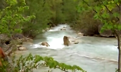 纤细的性别积极的黑发得到了她的湿cootchie袭击从背后坚硬的岩石