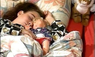 复古的金发碧眼的青少年使用的一个很大的老女孩