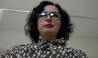 令人兴奋的学校教师脱下衣服和自慰在她的尼龙